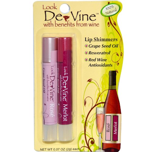 Look DeVine with Benefits from Wine 100% Natural Grape Seed Oil Resveratrol Red Wine Antioxidants Alcohol Free Gluten Free Cruelty Free No Pesticides, Parabens, or Other Unkind Chemicals Contains 2 Lip Shimmers Rose Merlot We have taken the timeless beauty and benefits of wine and unleashed them into DeVine Lip Shimmers. Wine grapes contain Polyphenols, which are known to fight free radicals and helps prevent cell damage. We have also added Resveratrol, a powerful antioxidant derived from red wine and grape seed oil, which was treasured by the Egyptians and praised by Greek philosophers making it a truly ancient beauty secret. DeVine Lip Shimmers feature the finest quality 100% natural ingredients available, for a truly natural balm for beautiful and healthy lips. Tasting Notes: Merlot - Deep Red Berries enhance feeling bold & dramatic! The soft Berry finish shimmers to a smooth and luscious conclusion. Rose - Soft Pink hue for a more subtly exciting look. The light fruit finish makes this a perfect every day lip shimmer.